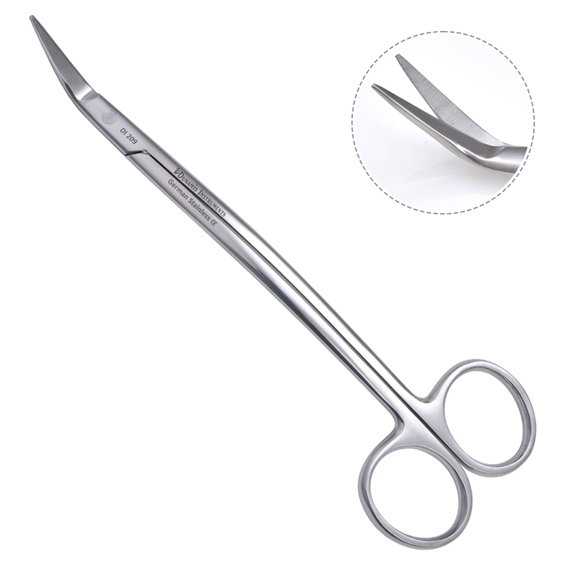 Dean Standard Series scissors with 1 serrated blade used for trimming tissue or cutting sutures. 16.5cm